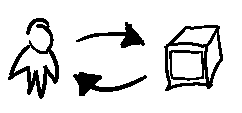 We see a single human who can communicate with a computer visual. This visual output communicates back to the human. The model is essentially a feedback loop through which the human and the computer visual each modulate their output based on the latest communication from the other.