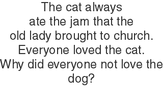 The cat always ate the jam that the old lady brought to church. Everyone loved the cat. Why did everyone not love the dog?