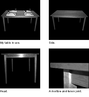My sister's wedding provided the impetus for my most ambitious project in wood. I designed and built twin cherry dining room tables. One I gave to her, one I kept for myself. I tapered the inside of the legs to make them seem to splay slightly, giving them stability without weight. They contain no hardware, only wood joints.